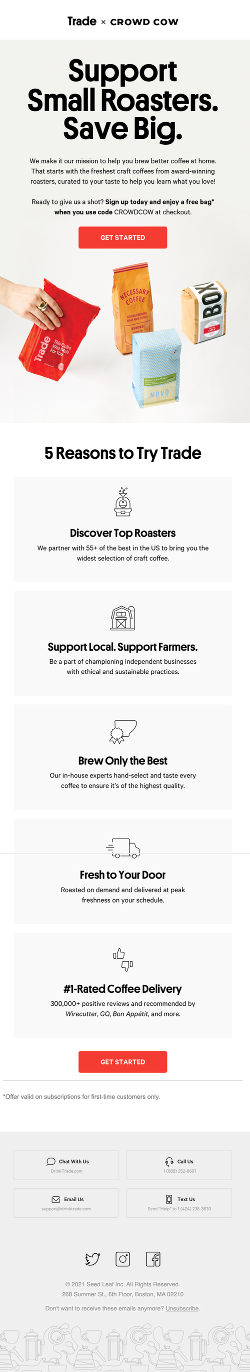In 2021, I worked as a digital designer at Trade creating ads, emails, modals, on site experiences and print work. Here’s a sampling of some of the projects.